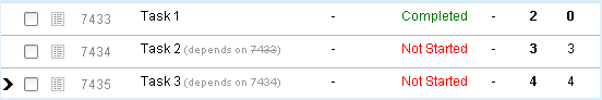 Example screenshot below demonstrates a tasklist where task #7435 depends on #7434 which in turn depends on #7433: